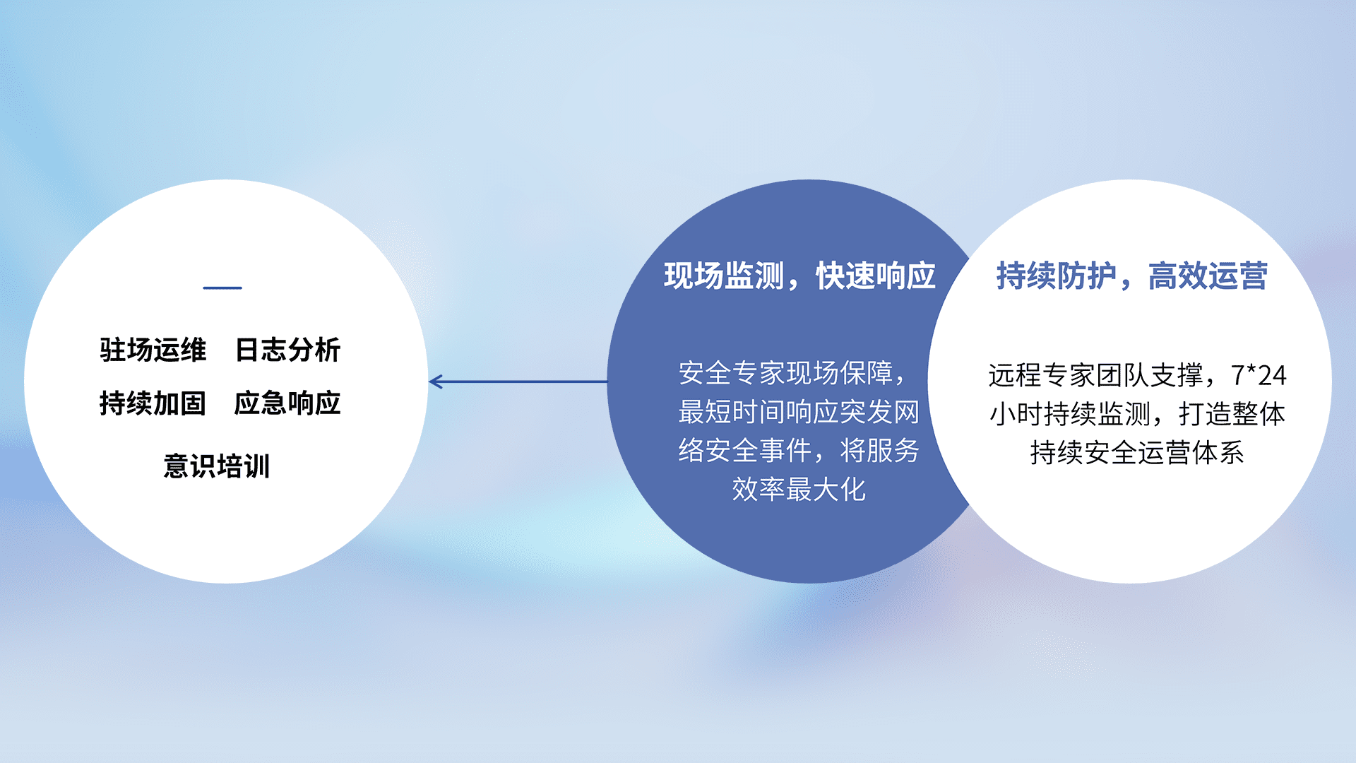 针对客户行业特性,,,,提供专属的一站式安全管理服务,,,帮助客户全面感知网络空间威胁,,,,通过安全专家的线上、、、、线下防护支持,,实现风险闭环,,,,将安全保障常态化,,,为客户打造常态化安全运维运营服务。。。。